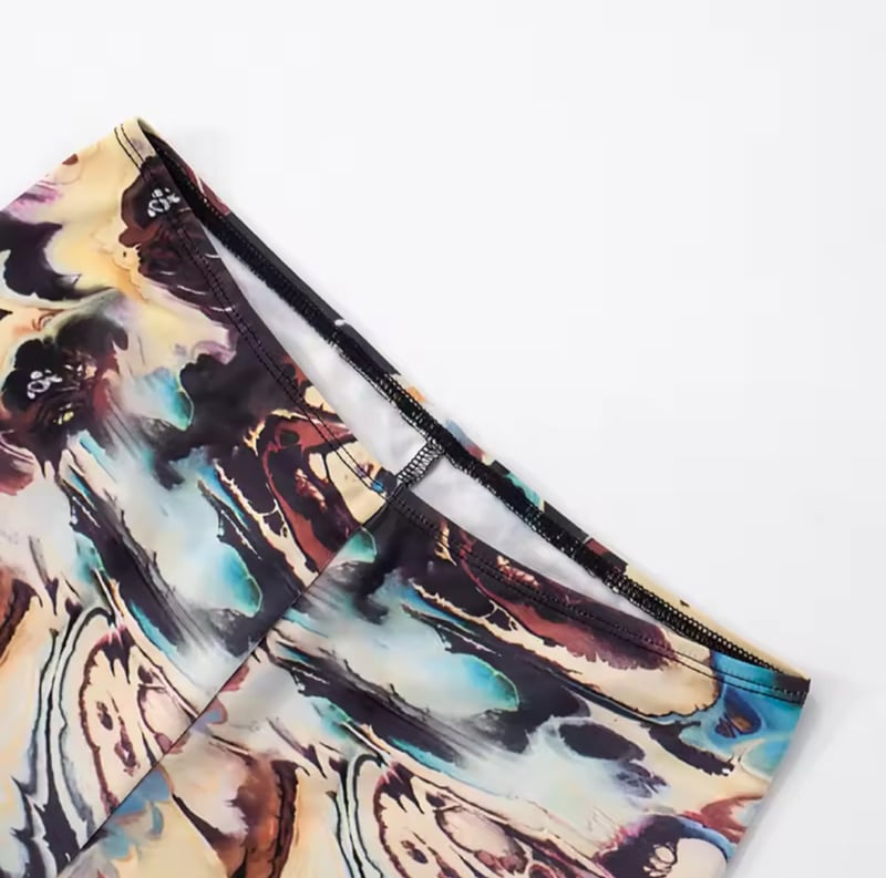 Printed elastic high waisted and elastic leggings. Can be paired with any sexy top for a date night or ladies night.